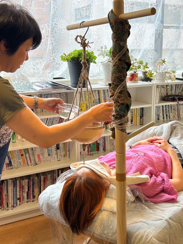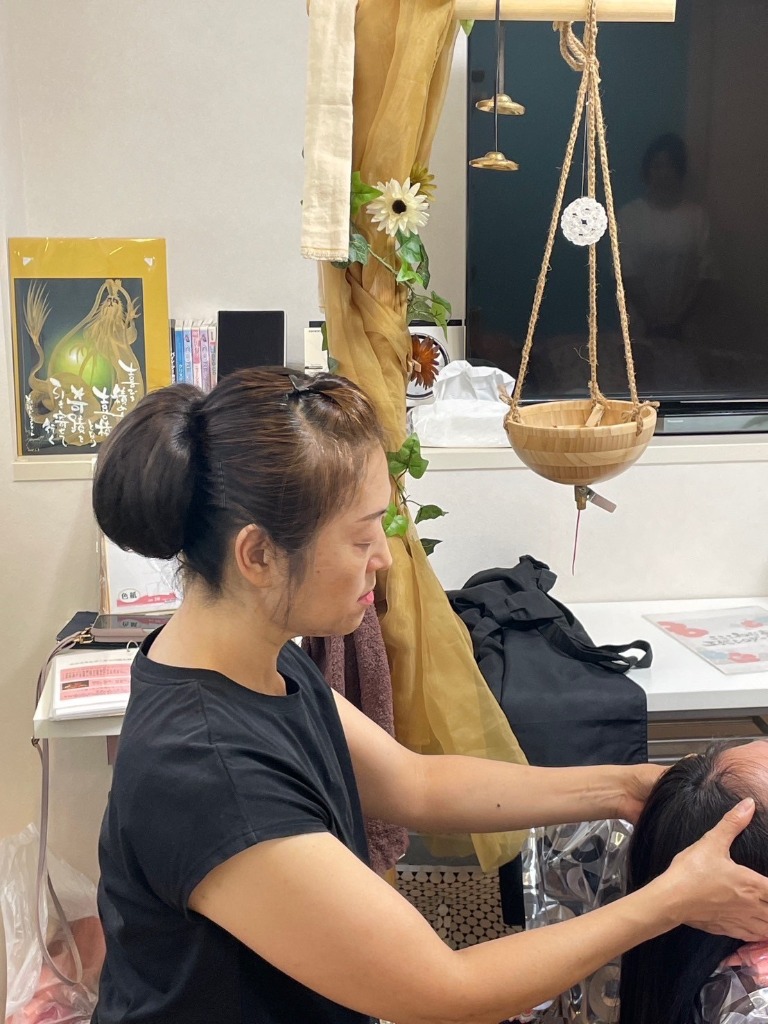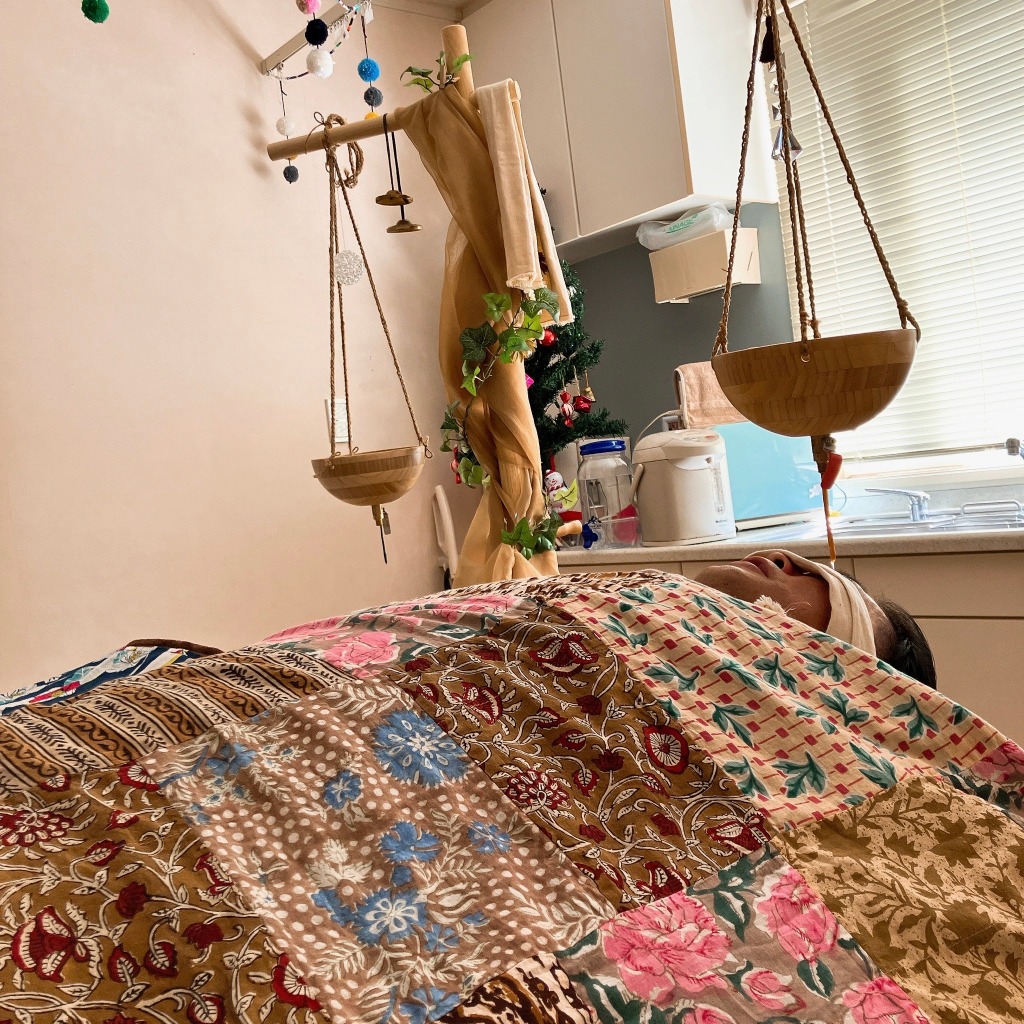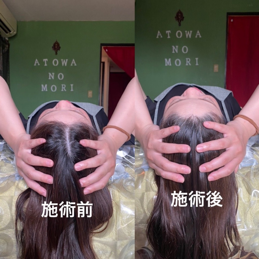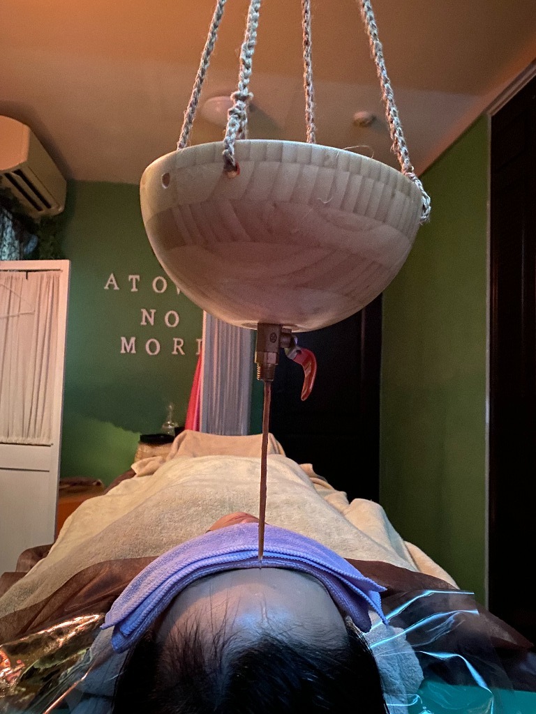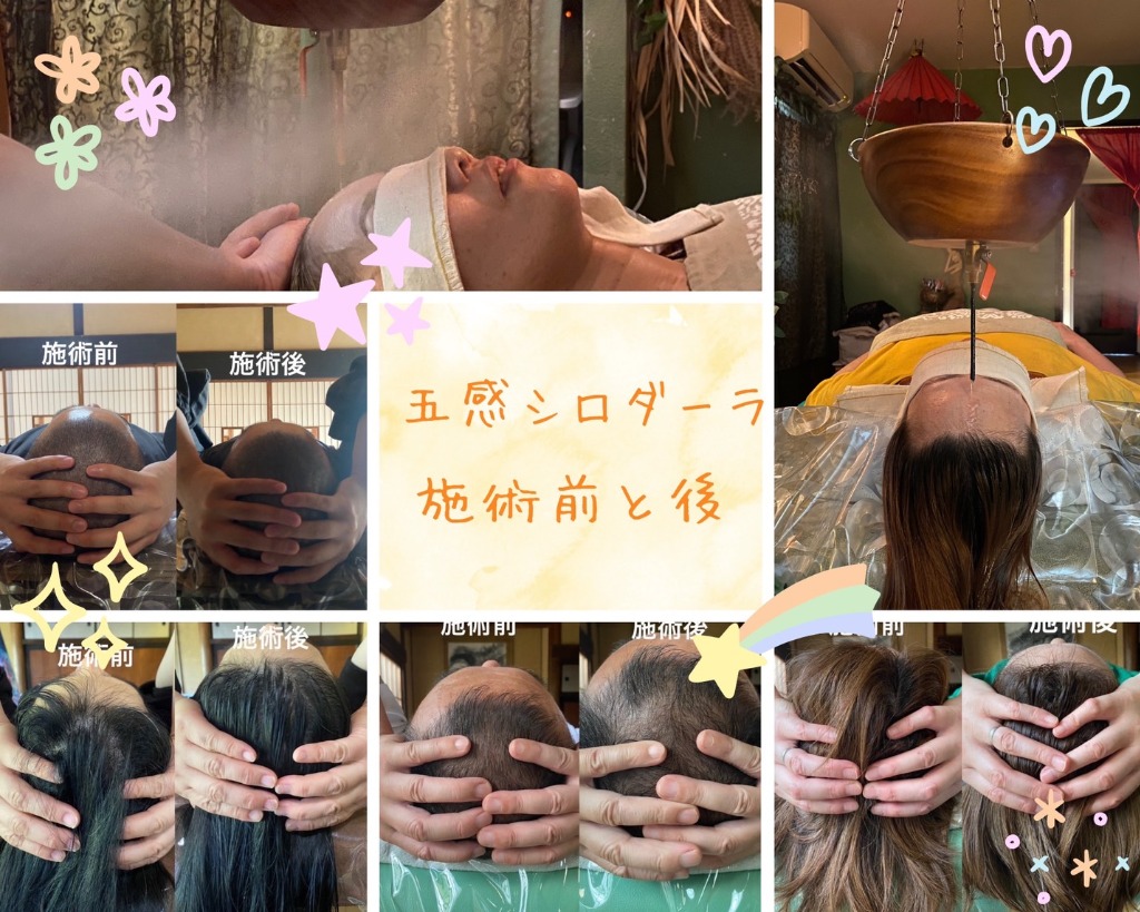 不思議なことに、シロダーラを受ける前と施術した後の耳から手を当てて測ると数センチですが小さくなるんです。頭蓋骨が小さくなるというより、脳内の浮腫み的なもや頭皮の緩みから小さくなるのではないかと考えています。面白体験として一回してみませんか?