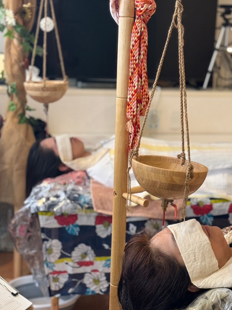 あとわの杜やイベント先での五感シロダーラ®見ているだけでも癒されます(#^.^#)